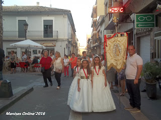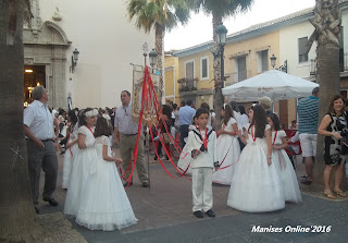 Precedía el acto el tabalet i la dolçaina y cerraba la procesión la Banda de Música La Artística Manisense. Una día especial, tanto para los niños como para los mayores (padres, abuelos y familiares) que han recordado y continuado una tradición que se remonta al año 1947 (Siglo XX).