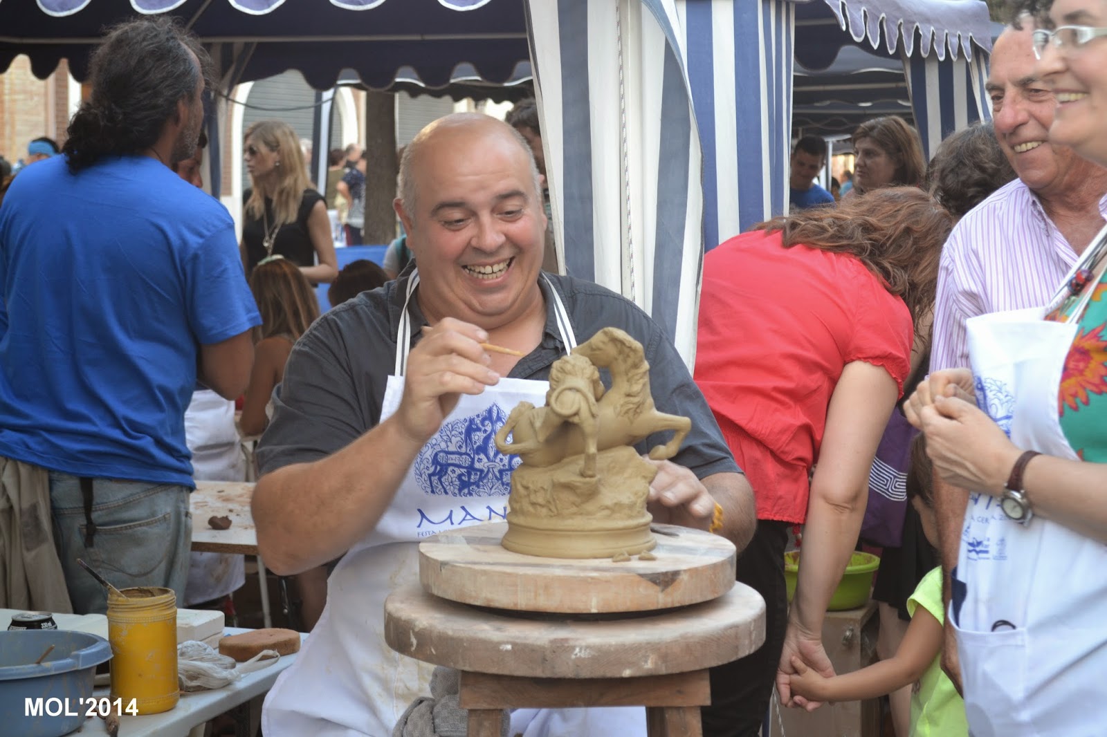 ARTESANOS CERAMISTAS MOSTRANDO SU ARTE ANTE MANISES Y LOS MILES DE VISITANTES QUE HAN ACUDIDO A VERLOS TRABAJAR.