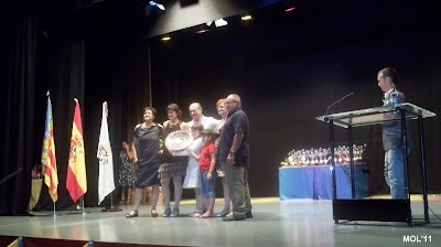Enrique Crespo, Alcalde de Manises, le hace entrega a su hijo Antonio Folgado y a su familia, el premio a título póstumo, concedido a su padre Antonio Folgado Alemany – El Tigre de Manises –.