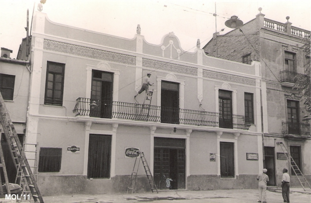 Pintando una de las fachadas. Fecha de la foto el 14 de Abril de 1953.