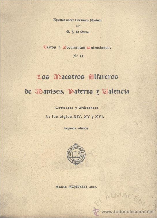 La loza Dorada de Manises en el año 1454, Cartas de la Reina Doña María de Aragón a Don Pedro Boil, Señor de Manises, por Guillermo Joaquín de Osma.