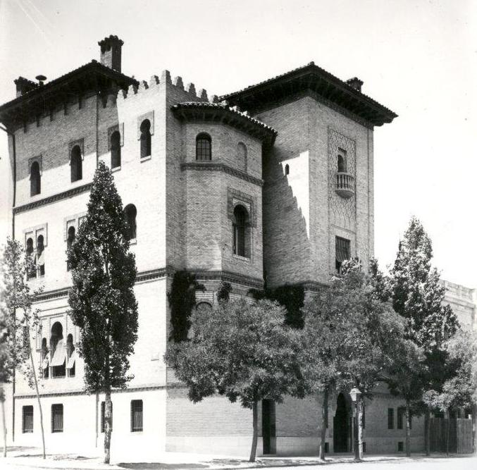 Vista frontal con la otra entrada al palacete, también en los años 1970 (siglo XX). Fotografía cedida por el Instituto.