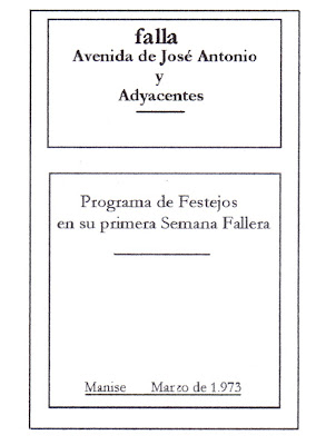 llamaba Avda. José Antonio y Adyacentes, debido a que era en esta avenida donde tenía lugar la plantà de la falla, y que ahora se llama Avenida de Vicente Blasco Ibañez.
