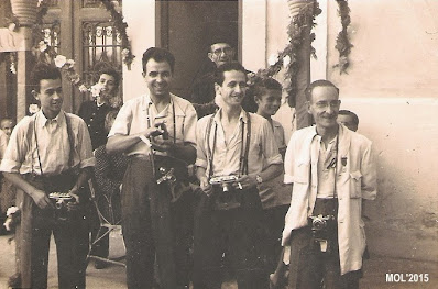 Fotografía en la que aparecen, de izquierda a derecha: Carlos Sanchis García (firmaba las fotos como Carlos Sanchis), Juan Santolaria Gómez (firmaba las fotos como Santolaria), José Gadea Luján (firmaba las fotos como Gadea) y Juan Soler Herreras (firmaba las fotos como Solher). Archivo de Juan José Santolaria Valls.