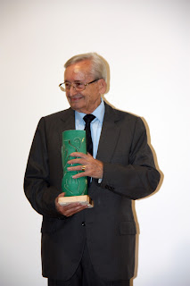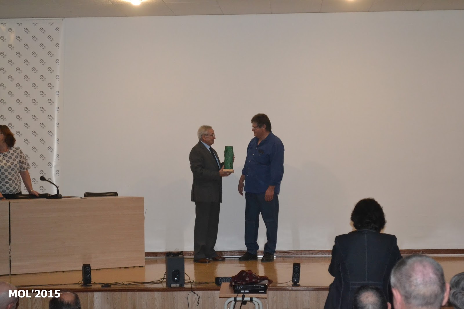 Una vez finalizado el vídeo Don Manuel Larena fue invitado a subir para proceder a entregarle la pieza de cerámica que había ganado el premio de la exposición que se había presentado. Su autor Pepe Royo también subió al escenario para felicitarle por el homenaje y hacerle entrega de la pieza de cerámica.
