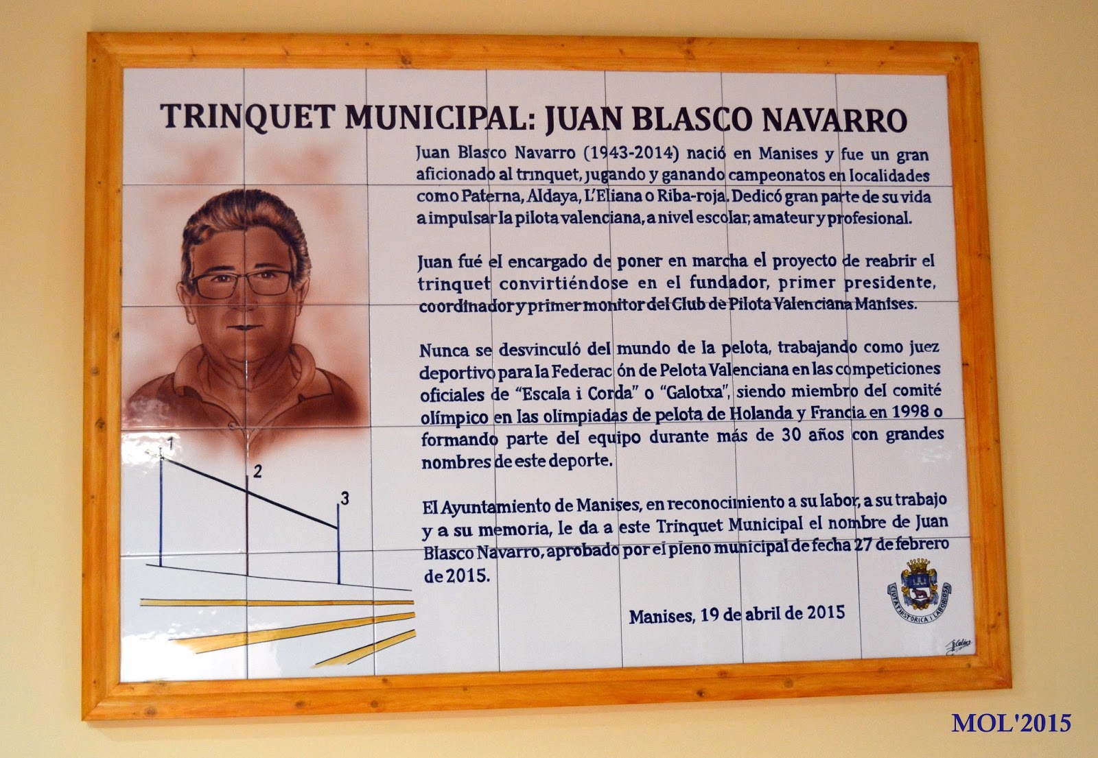 otorgado al Trinquet Municipal el nombre de Juan Blasco Navarro, en