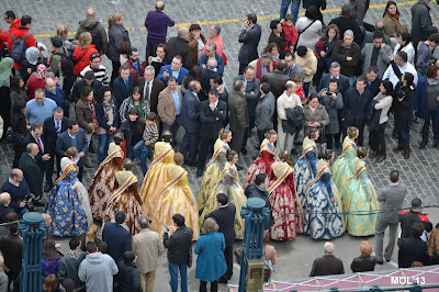 Terminada la actuación abandonan el reciento las Falleras.