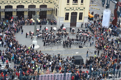 En las siguientes fotografías se puede apreciar como poco a poco los músicos se van acercando a los atriles y a sus respectivos instrumentos, para comenzar la actuación.