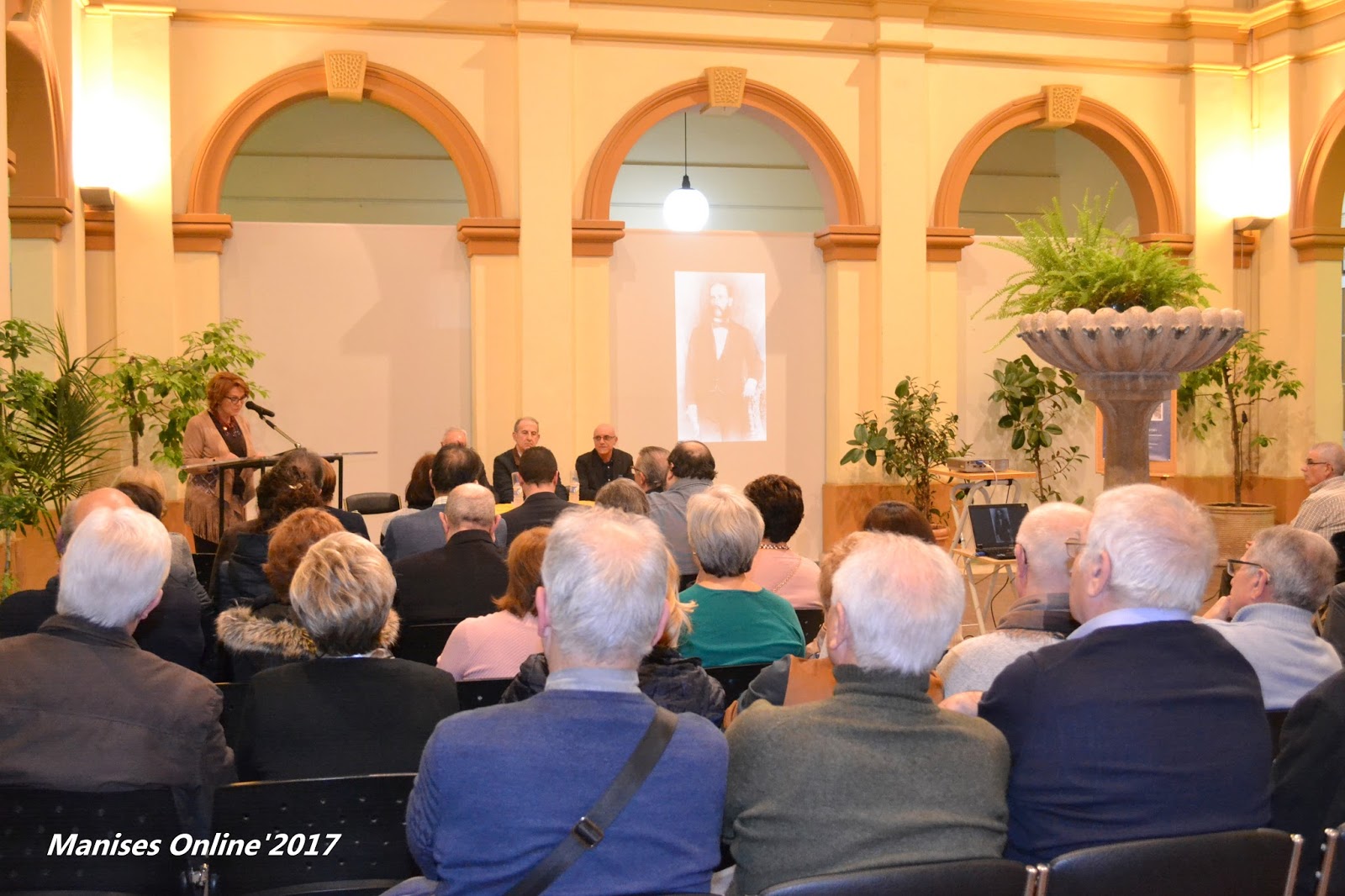 Mientras iban tomando la palabra los distintos representantes políticos, presentadora e incluso el autor del libro, el acto se complementaba con unas dispositivas relacionados con el libro. En concreto ésta que ahora pueden ver es la que corresponde al Manisero Ilustre Rafael Valls David.