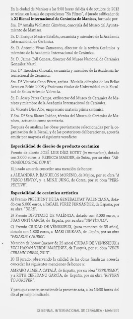 El pasado jueves 14 de Noviembre tuvo lugar la entrega de premios de la Bienal Internacional de Cerámica de Manises, que se realizó en el Auditorio Germanías de la Ciudad.