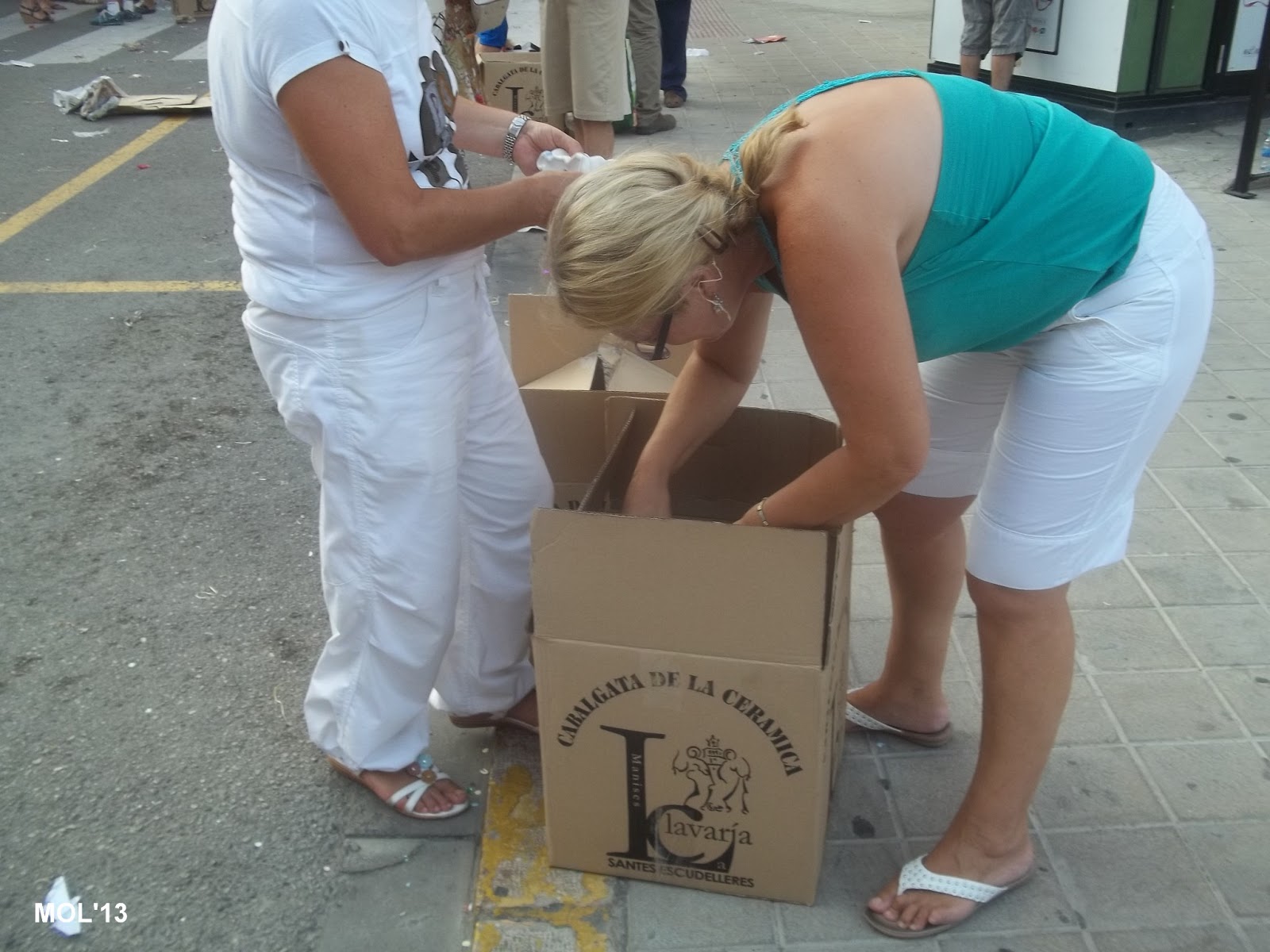 Desde la calle del Molino de la Luz, hasta la Avda. de Blasco Ibáñez, los maniseros y visitantes recogieron la típica «escuraeta» de cerámica, además de piezas como lámparas, centros, cuencos, centros florales, macetas, floreros, ceniceros, figuras y flores de porcelana, etc., que durante todo el año los clavarios se han encargado de guardar para tirar (se entrega completamente gratis) durante este día.