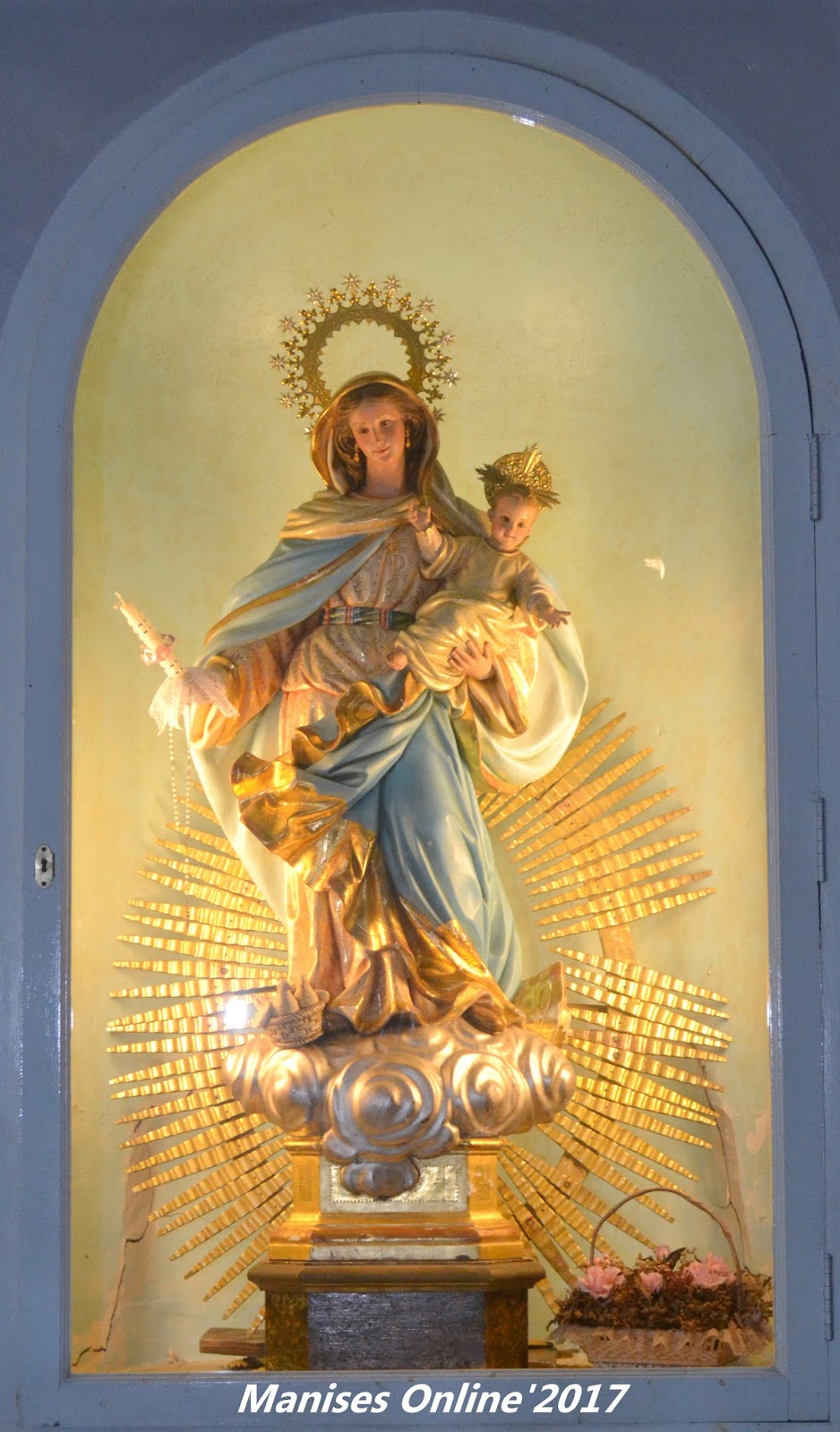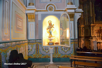 Consisten éstos, entre otros, en un festival infantil, donde hay obsequios para los niños asistentes. La Misa que se celebra el día 2 y donde se reparten las candelas, previamente bendecidas por el sacerdote, tras de cuyo oficio religioso se efectúa la rifa de la tortà, una cuidadosa pieza de pastelería, adornada además con una pequeña imagen o estampa de la Candelaria, y llena toda ella de golosos detalles . . . . Por la tarde la procesión por las calles de Manises con la imagen, que es una bella escultura obra del imaginero valenciano Miguel Sales, que fue inaugurada el año 1965. Precede a la imagen dos niñas con dos cestos llevando los tórtolas o blancas palomas, que conmemoran el ofrecimiento que hiciera la Virgen María cuando presentó al Niño Jesús en el templo. (sic).»