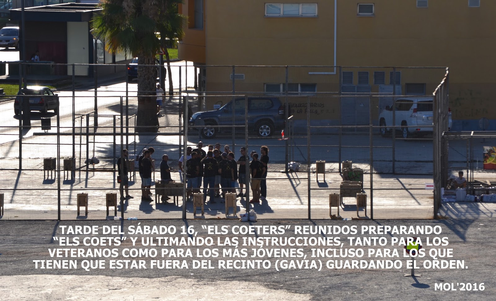Los contactos fructifican, la ilusión se contagia y al final el día de la Cordà, con las imágenes que veremos más adelante, se confecciona una lista de personas –coeters– que entrarán dentro de la gavia y otros que se encontrarán dentro del perímetro de seguridad establecido para ayudar en lo que puedan. De Manises son el 80 %, pero también cuentan con la ayuda de coeters experimentados que en todo momento les apoyan y les orientan.