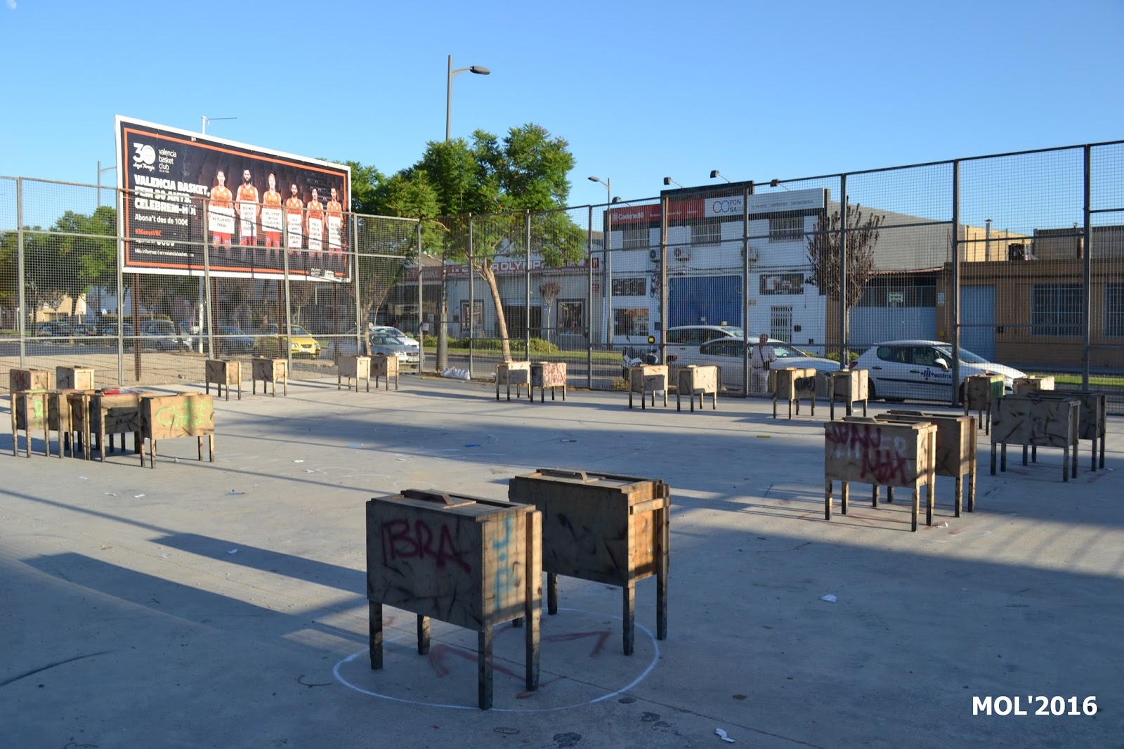 En el año 1999 se cambió de emplazamiento y esto duró hasta el 2001, ambos inclusive, en que se reubicó en la plaza que existe en la Báscula, y al terminar la Cordà, existía un compromiso -no escrito- de que los desperfectos que se ocasionaran y la pintura para adecentar las fachadas de las casas, que eran de blanco, el Seguro las tenía que pintar.
