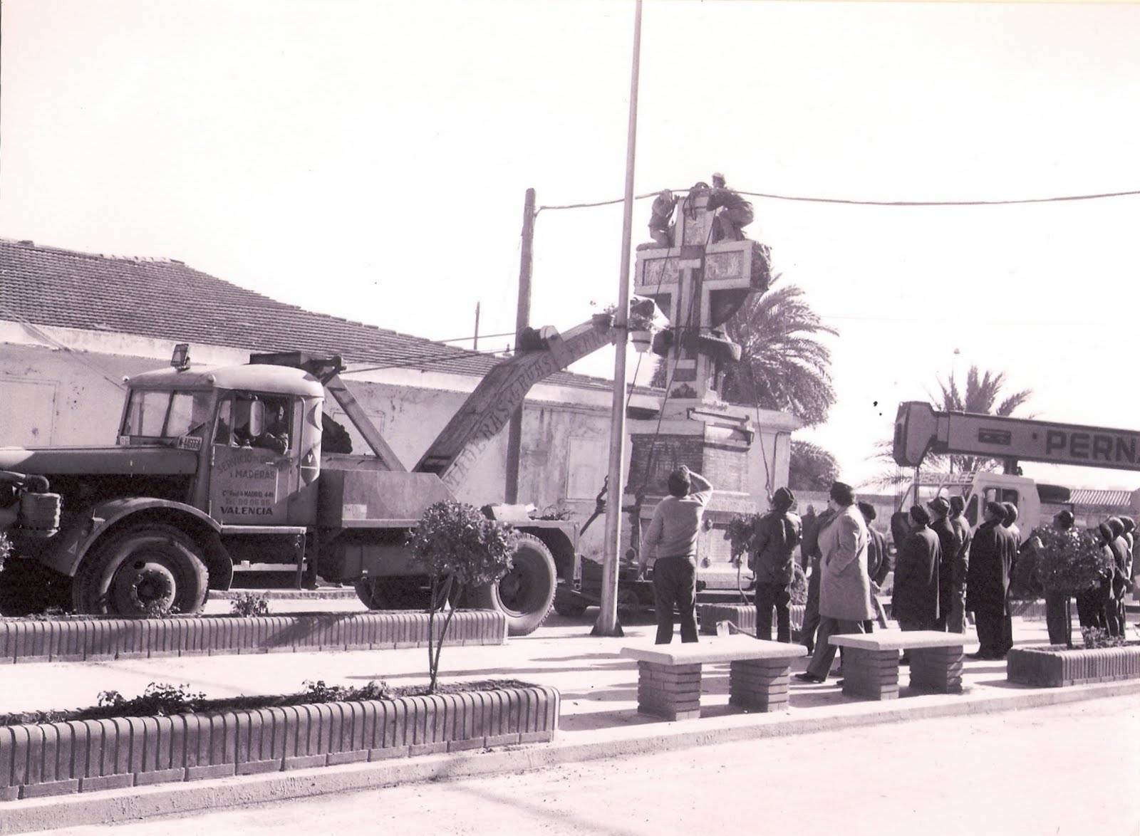 La Creu en l’Avinguda. La grua depositant-la en la