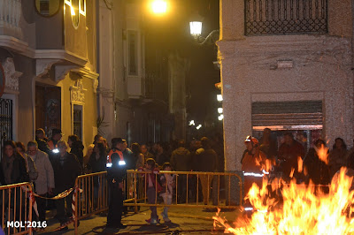 Para finalizar el acto se ha procedido a disparar una traca correguda (una de las tradiciones que no se celebraban desde hace muchos años y que tuvo su origen a finales del Siglo XVIII, principios del XIX) en la que los clavarios van corriendo -por debajo de la traca mientras va quemándose- hasta el sitio final en que se termina que, habitualmente, es una disparà, como colofón a la fiesta. La traca correguda comenzó en la Calle San Juan y terminó en el aparcamiento del Metro, parada Manises, donde se había preparado la disparà.