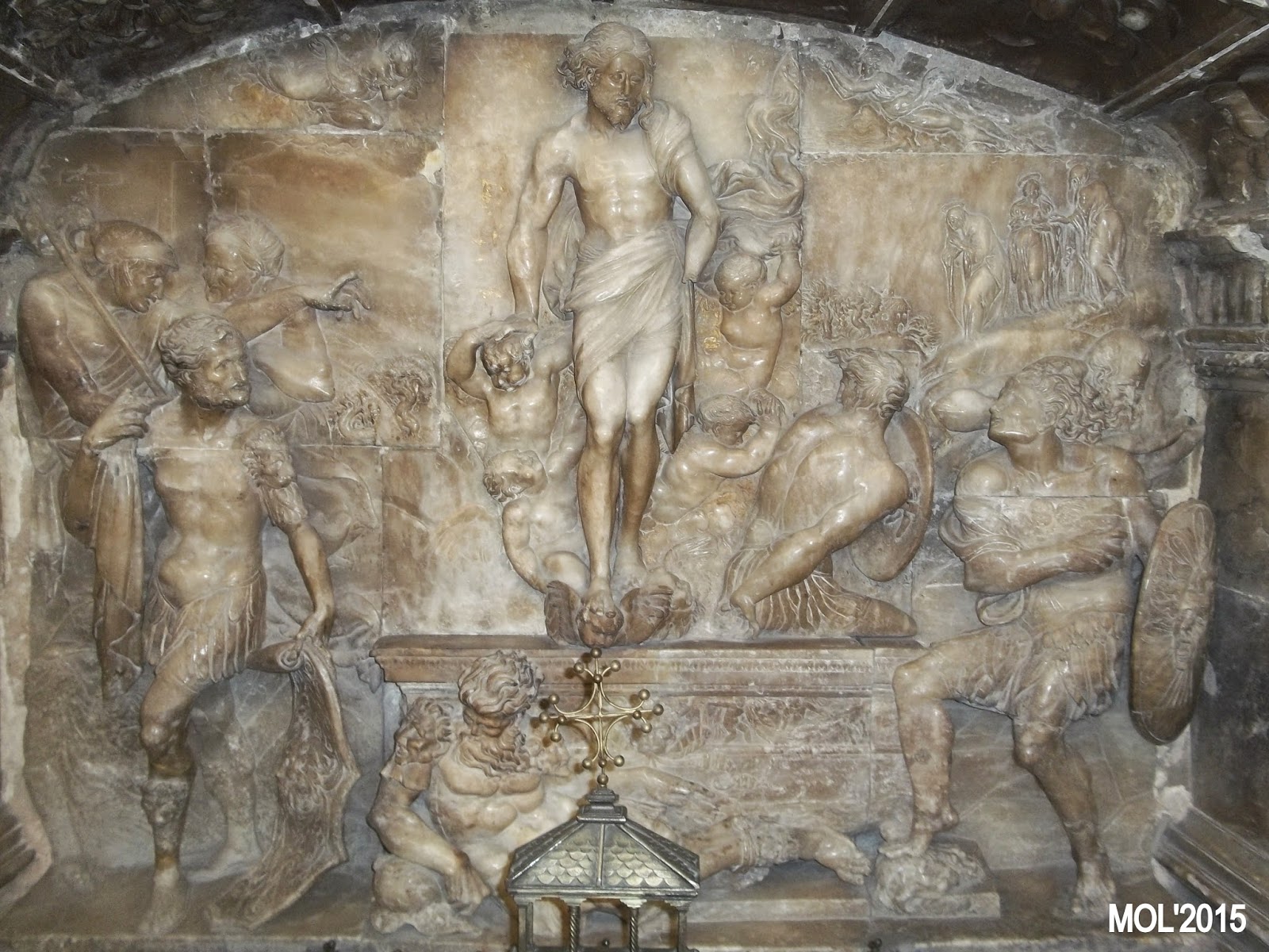 El altorelieve de alabastro representa la resurrección del Señor y es obra de Gregorio de Biguerny. Fue colocado en este lugar a principios del siglo XVI. Conserva restos de policromía y del dorado que lo decoraban en su primitivo aspecto. (sic de la información que se encuentra en el altar).