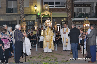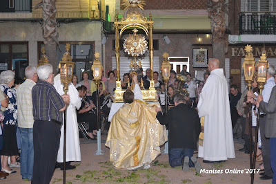 Se ha celebrado en la Parroquia de San Juan Bautista de Manises, la tradicional clausura del acto de les XL (quaranta) hores, que con el tercer y último día, ayer día 6 de Junio, finalizó en la Plaza de la Iglesia.