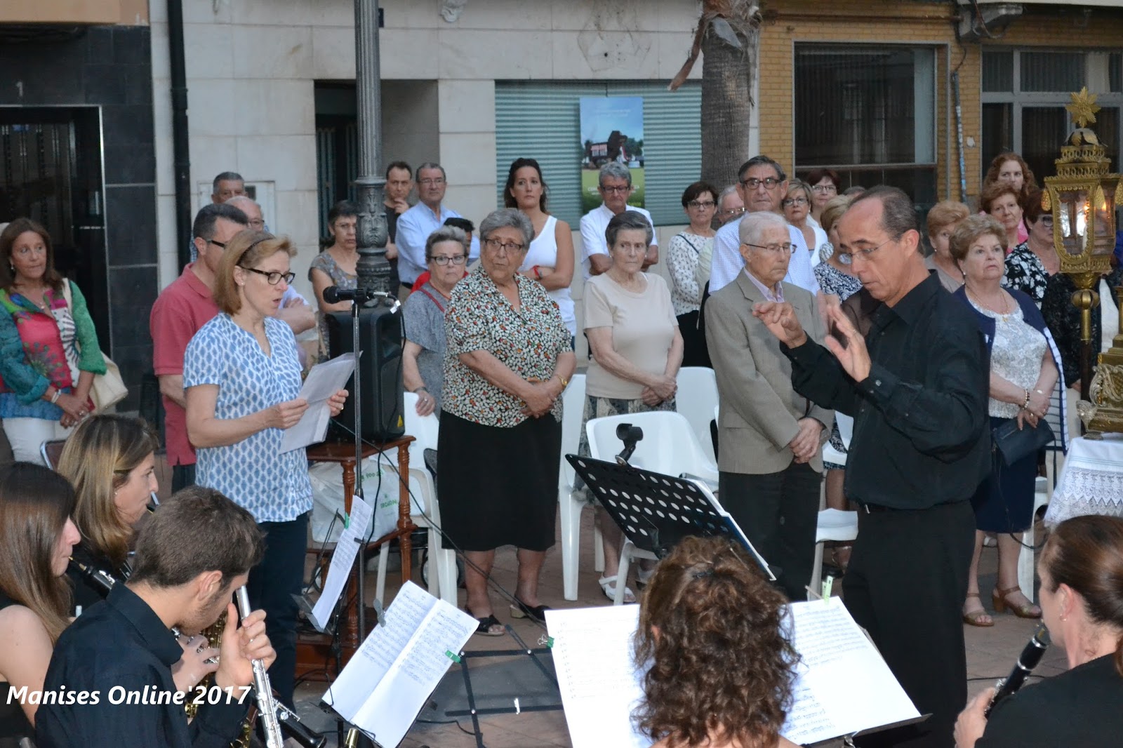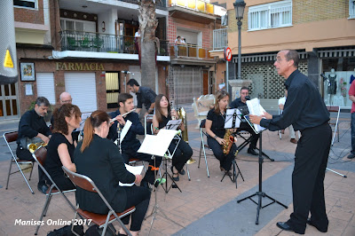 La Artística Manisense ha participado en el acto tocando las diferentes canciones, tanto sola como acompañando a los solistas. Esta fotografía corresponde al momento previo a la celebración, ensayando.