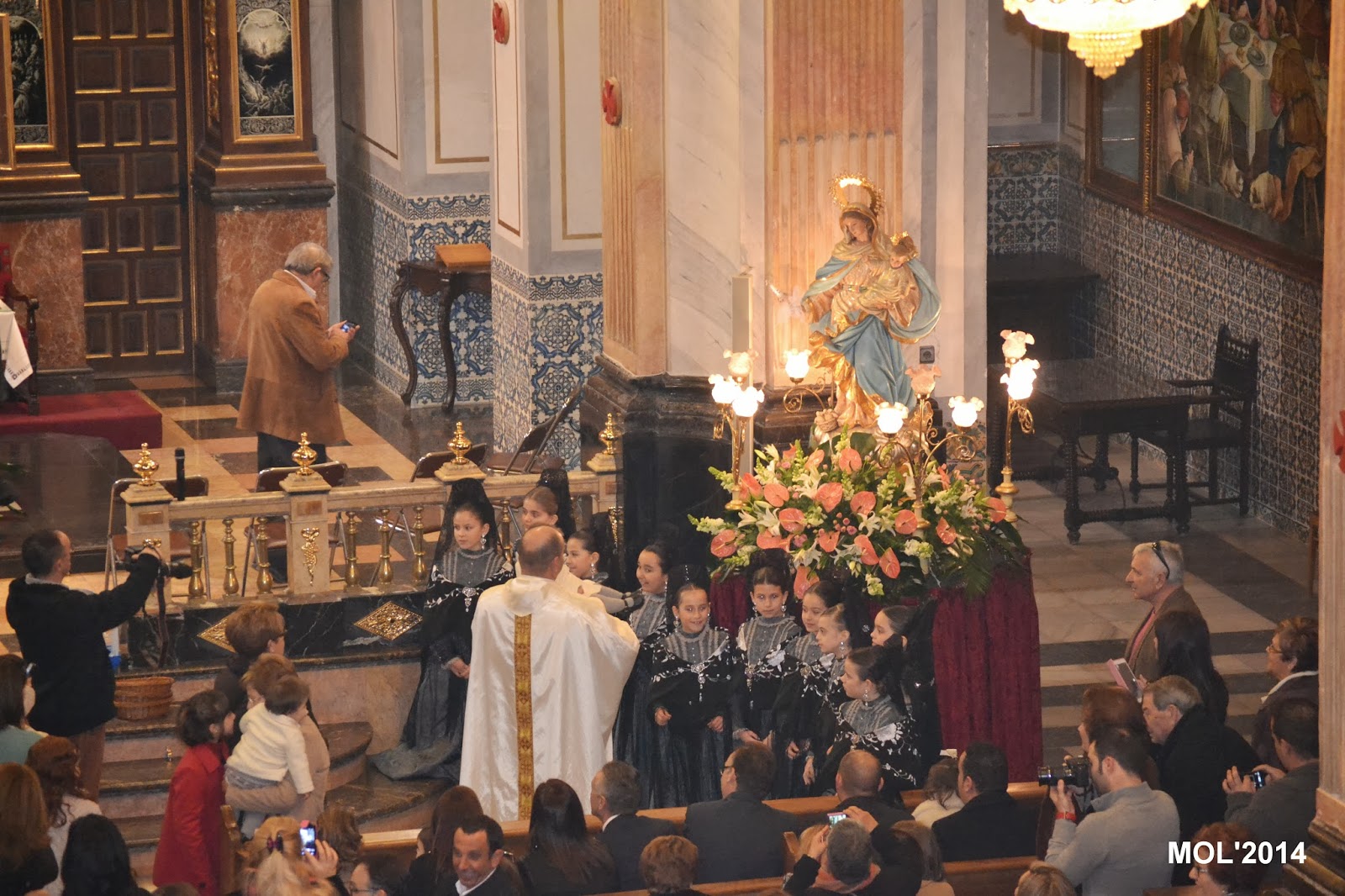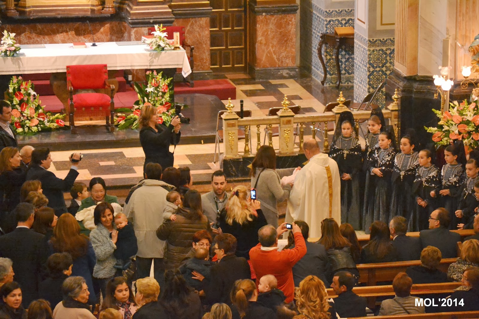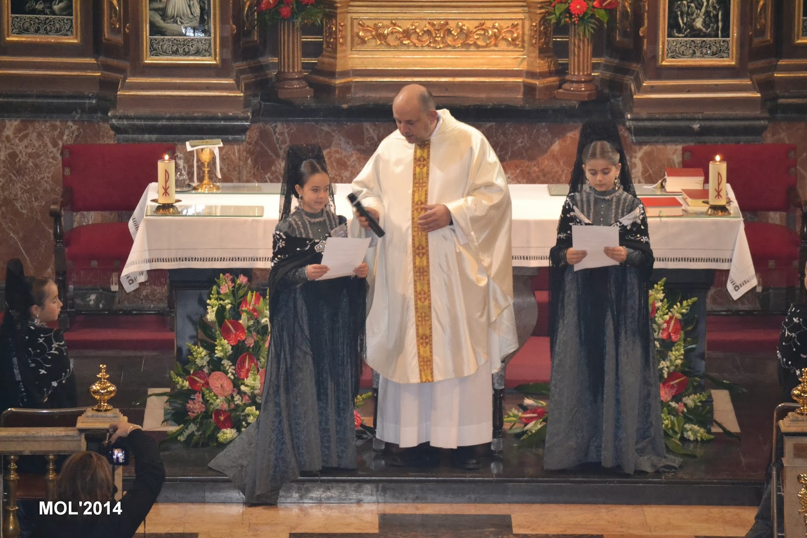 Las Clavariesas participaron en las lecturas y preces de la Misa. Las ofrendas fueron presentadas por las mismas niñas al sacerdote que las recibió al pie del altar.