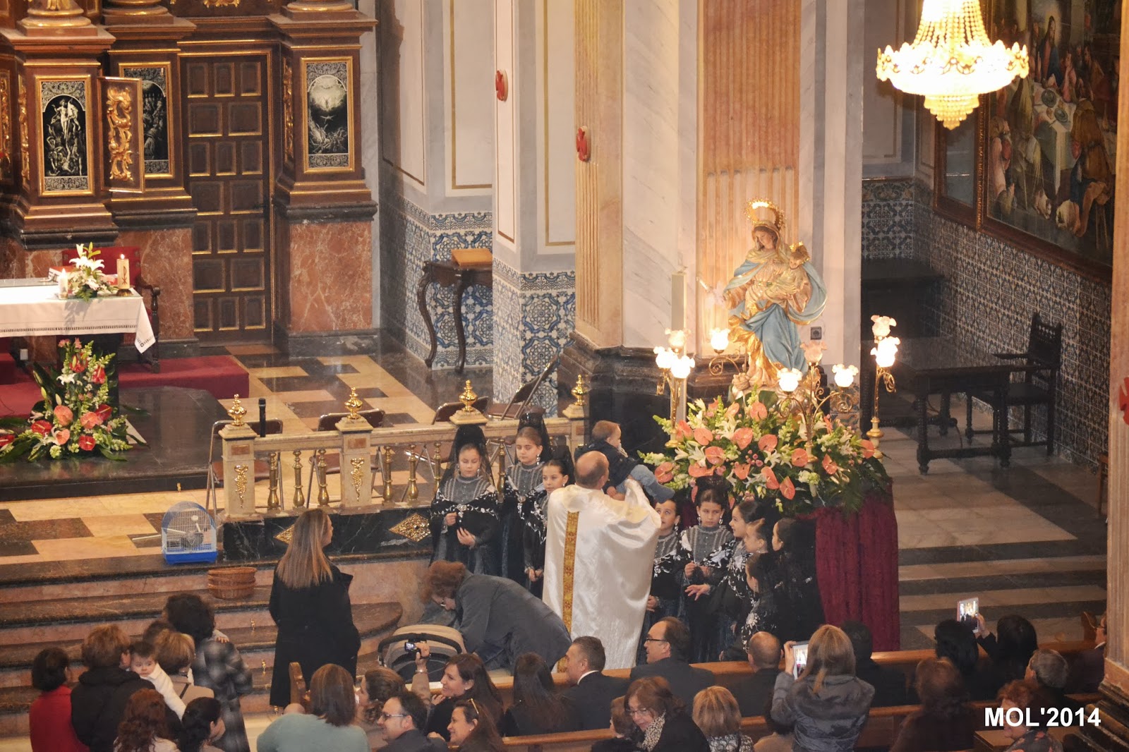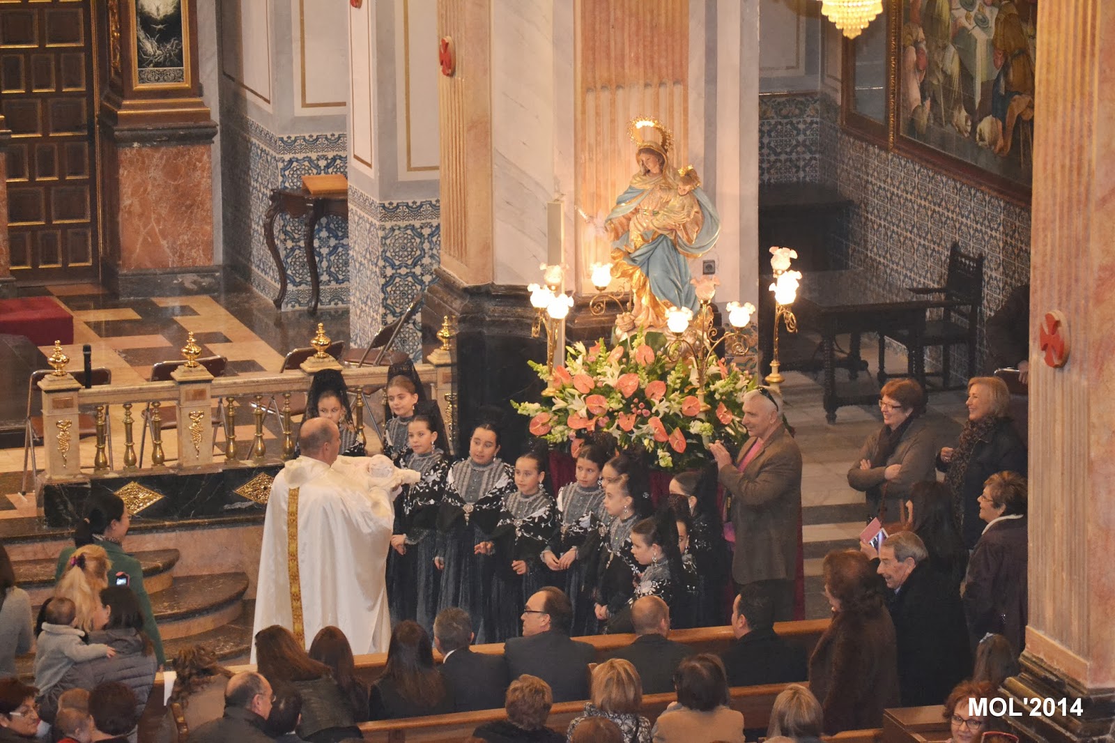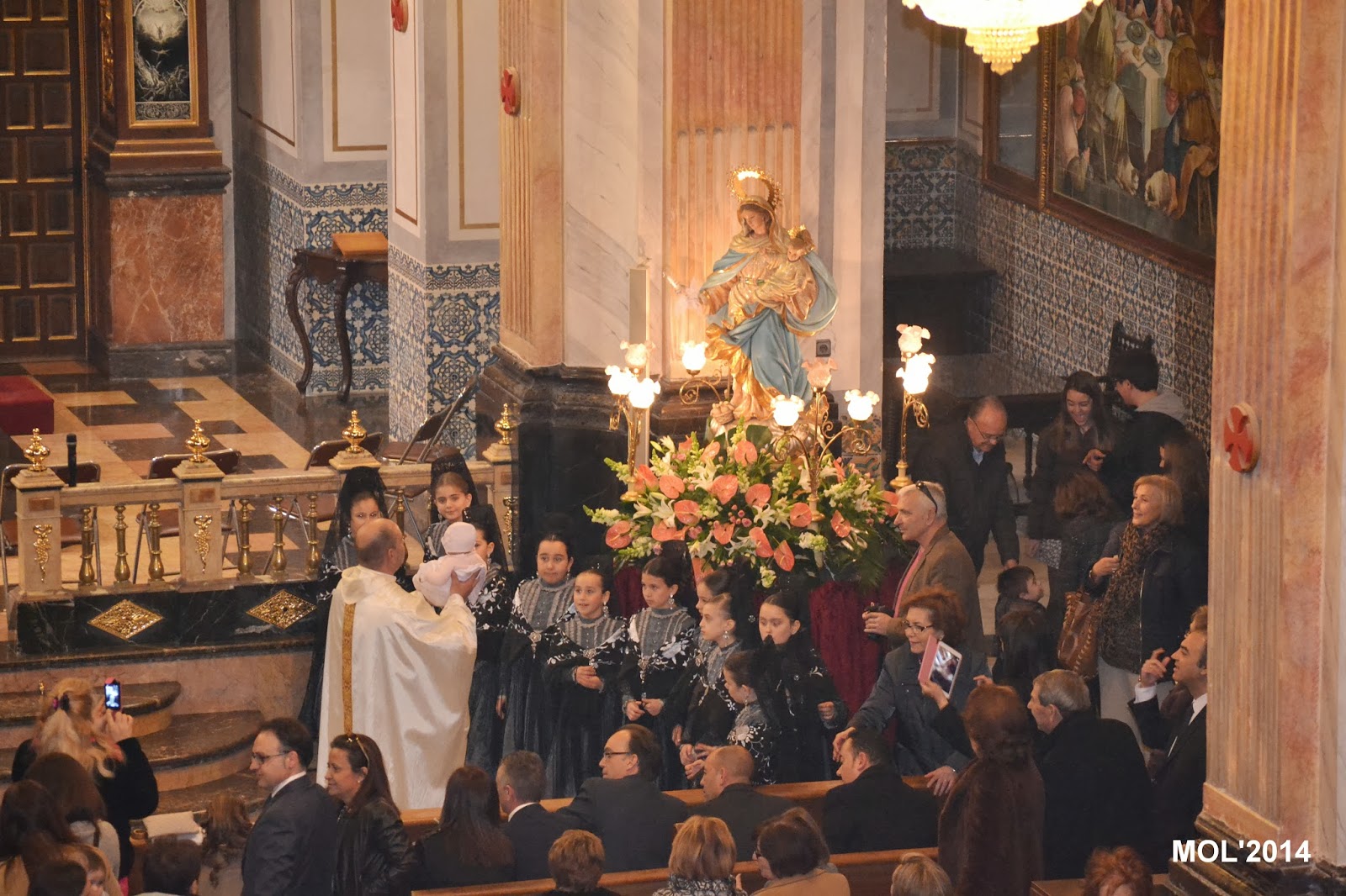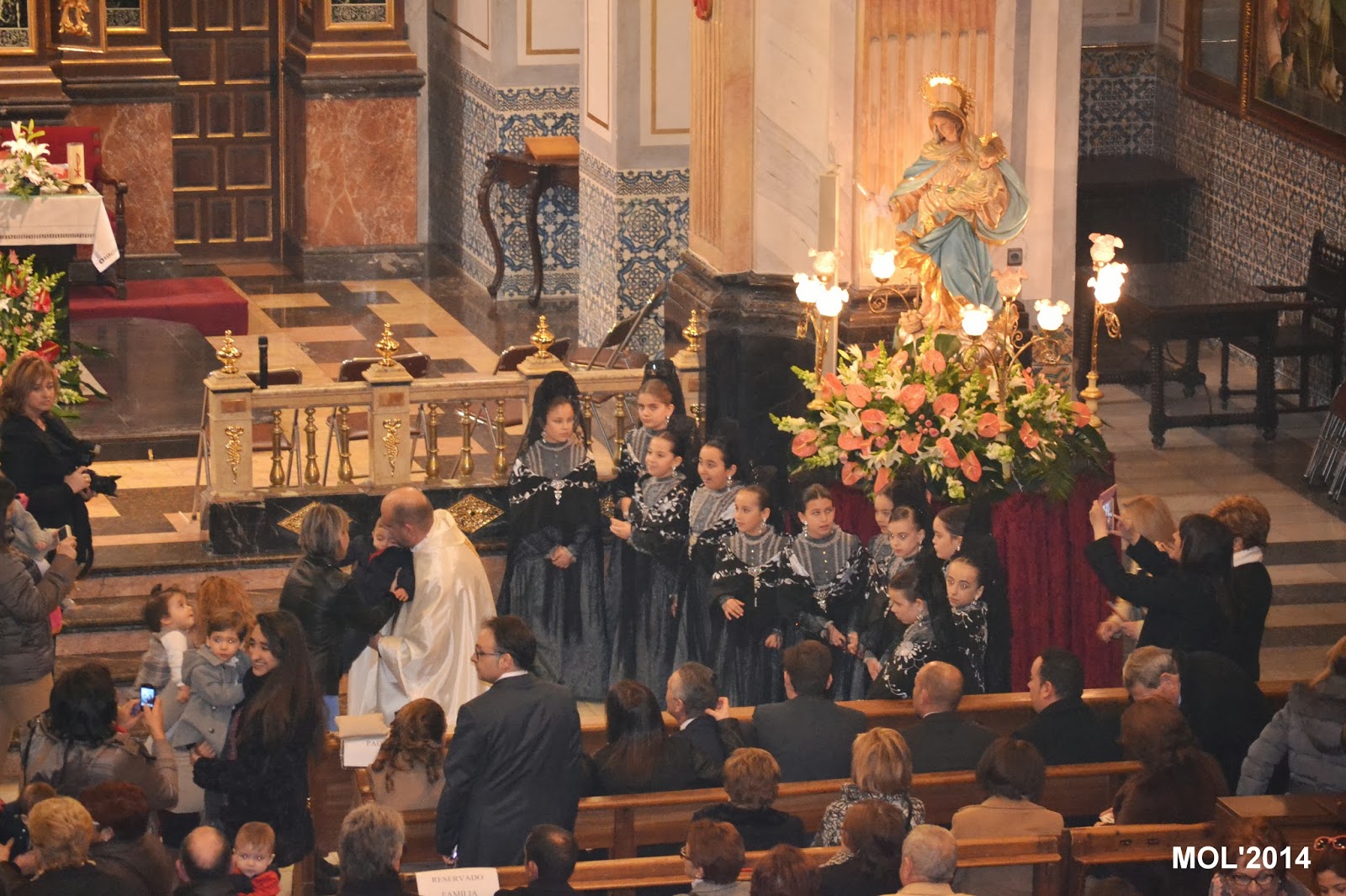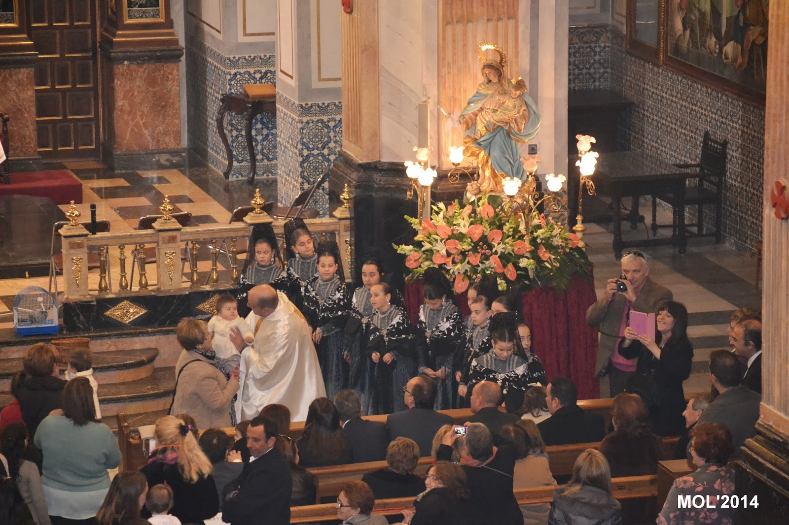 A continuación, las clavariesas se fotografiaron al pie del anda con la imagen de la Virgen y acto seguido las madres, que quisieron, con su recién nacido, se lo entregaron al sacerdote que lo ofreció a la Virgen. Fue un acto emotivo y lleno de simbología con el que se dio por finalizada la Santa Misa.
