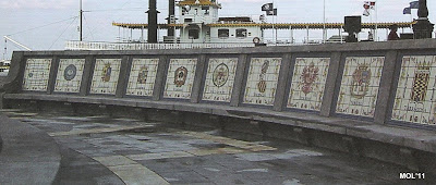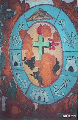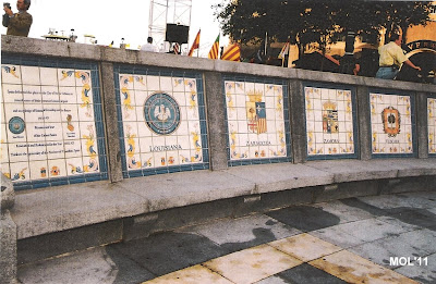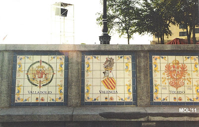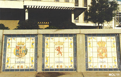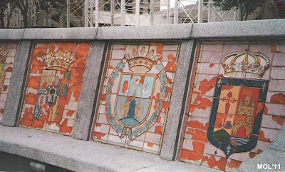 Los paneles de azulejos, con los escudos de las provincias españolas, están -como se observa- completamente deteriorados por el tiempo y por el uso.