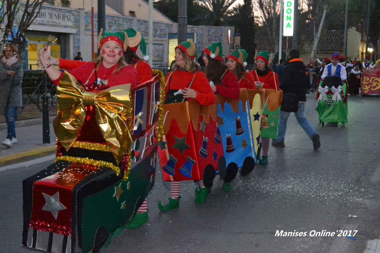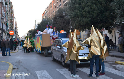 El Jueves día 5 de Enero ha sido un día que ha llenado de felicidad a todos los niños y niñas de Manises que desde muy temprano han podido disfrutar de lo que se les había preparado. En primer lugar los comerciantes de la Ciudad tenían -como ya viene siendo habitual- circulando el tren que les llevaba a visitar las calles de la población, saliendo de la Plaza de la Iglesia (cada año se turnan, éste le tocaba la parada en el Centro Histórico, el año pasado el tren se estacionaba en la Plaza de Rafael Atard).