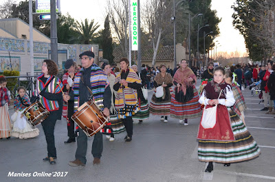 Por la tarde la concentración para la cabalgata ha tenido lugar en la Avenida de Vicente Blasco Ibáñez, y en ella han participado las Fallas de Manises, Asociaciones Culturales: Grup Repicó, Bandas de Cornetas y Tambores, Tabalet i dolçaina, etc.
