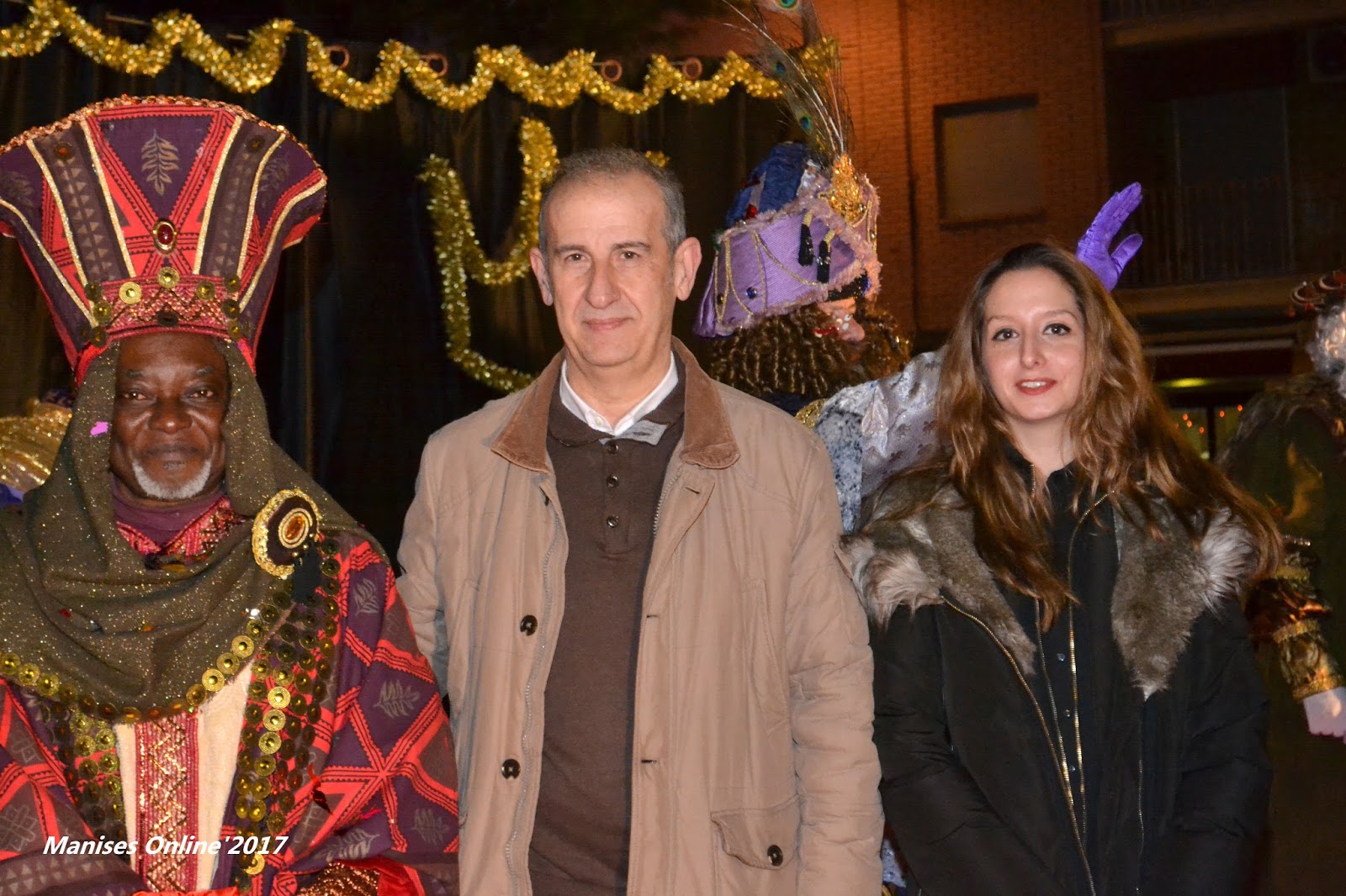 El Rey Baltasar posando con el Alcalde y la Concejala de Fiestas agradeciéndoles su asistencia.