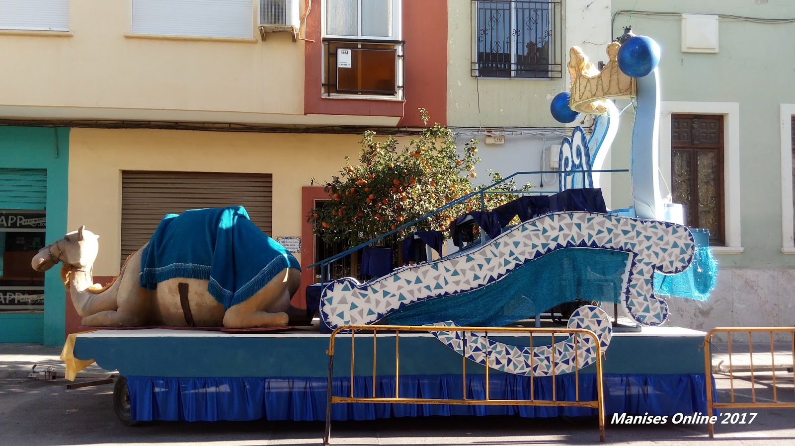 Con vistas a la cabalgata de la tarde, las tres carrozas de los Tres Reyes se habían estacionado en la calle de Guillermo Joaquín de Osma, delante de la antigua Escuela de Cerámica (Escola del Dibuix).