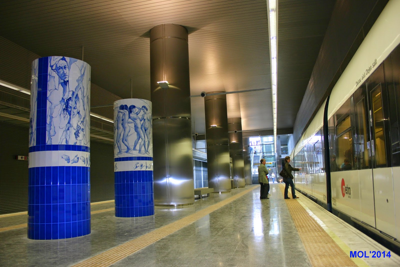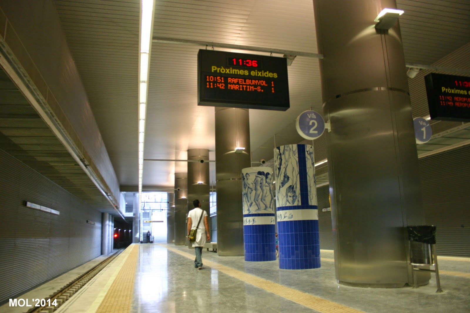 Entre los muchos proyectos en los que Paco ha participado en Manises, podemos destacar «els fumerals» que se instalaron en el Metro de Manises, en las paradas que existen. Aquí le vemos en su estudio con los bocetos de los azulejos y una explicación de los mismos. También cómo han quedado expuestos en el centro del andén de la parada del Metro.