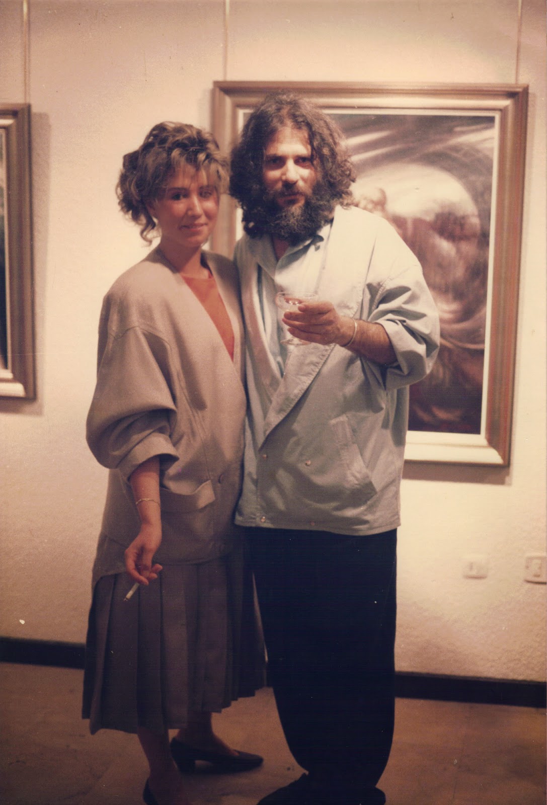 En la Galería Pizarro 8 de Valencia, con su mujer Ana, en su época bohemia.