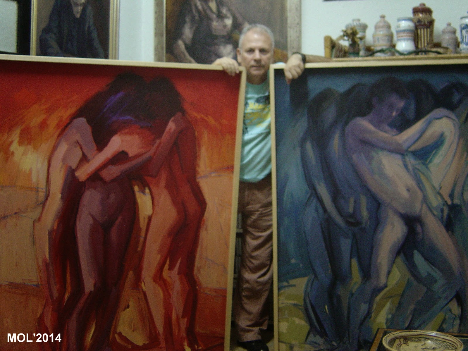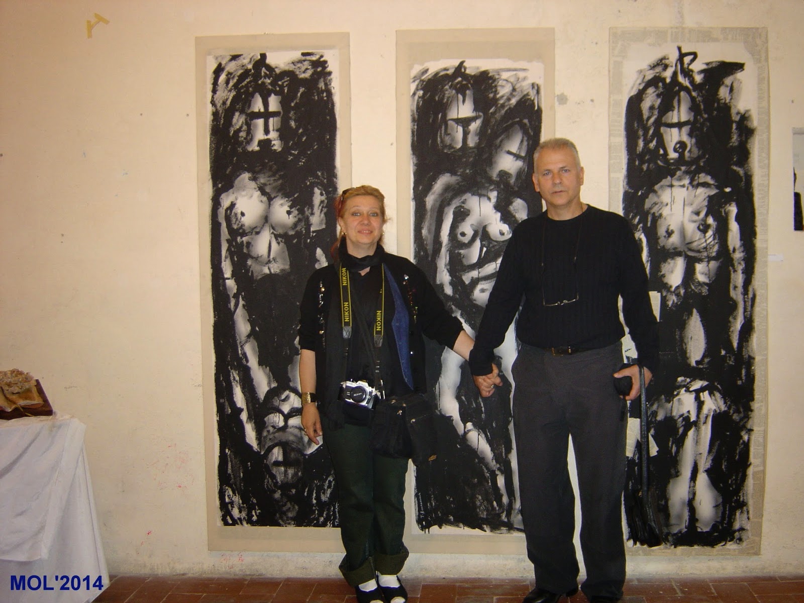 Con el pintor José Pinto, fundador y presidente de A.I.A,, y su esposa.