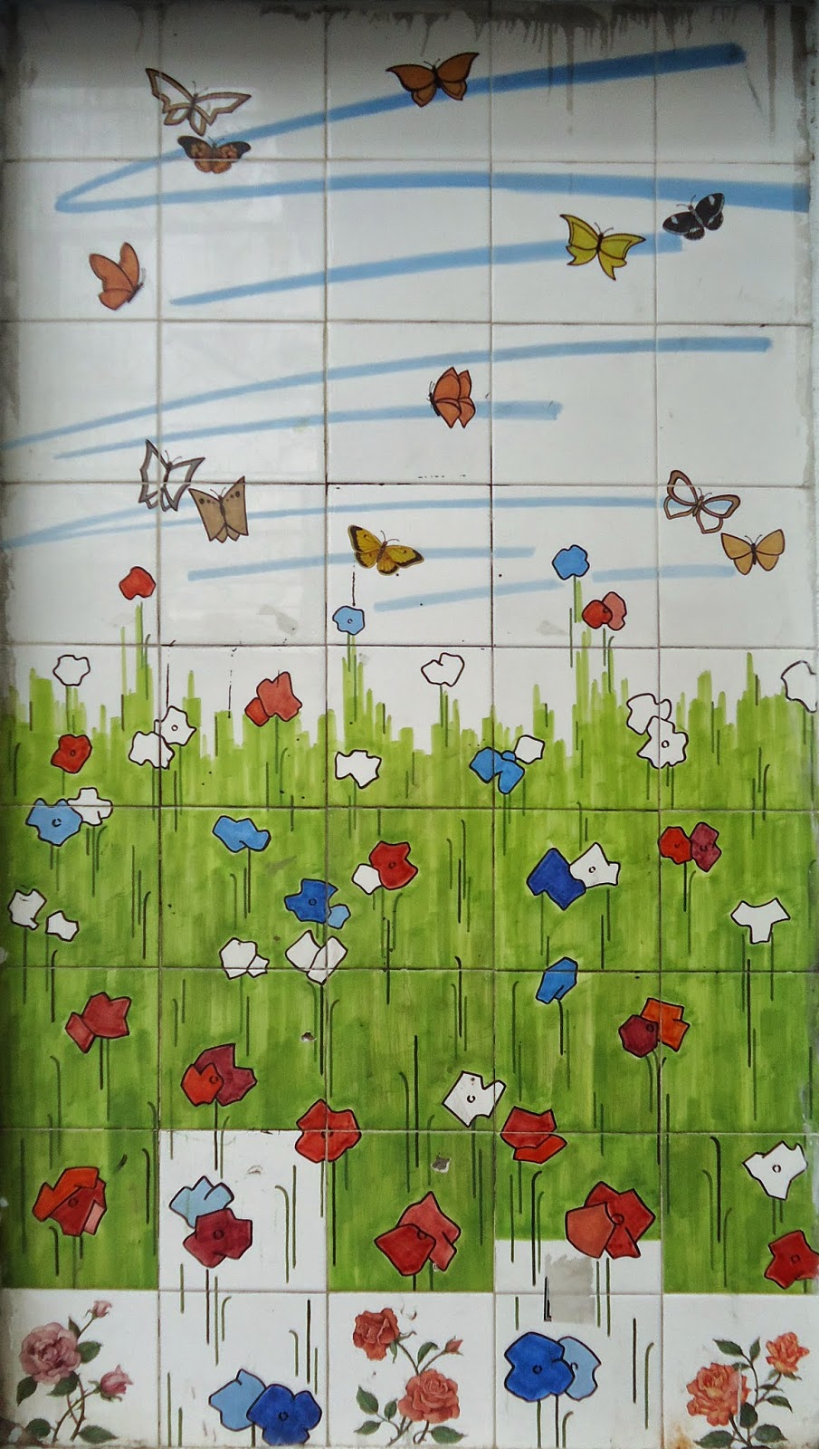 Entre los muchos proyectos en los que Paco ha participado en Manises, podemos destacar «els fumerals» que se instalaron en el Metro de Manises, en las paradas que existen. Aquí le vemos en su estudio con los bocetos de los azulejos y una explicación de los mismos. También cómo han quedado expuestos en el centro del andén de la parada del Metro.