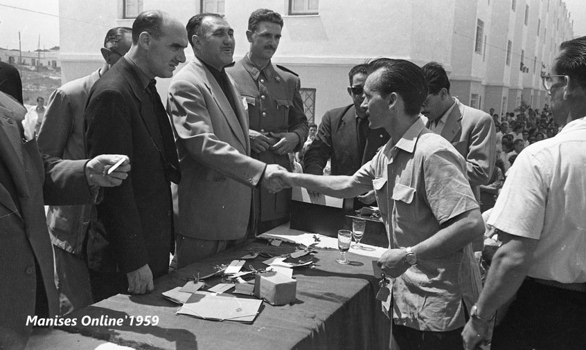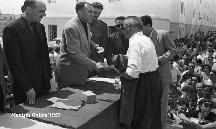 A continuación el locutor de la emisora “La Voz de Levante” iba leyendo los nombres de les persones que habían tenido la suerte de haber conseguido las llaves de su nueva vivienda en el barrio. Se les dio -junto con las llaves- una papel indentificativo como propietario de la vivienda.