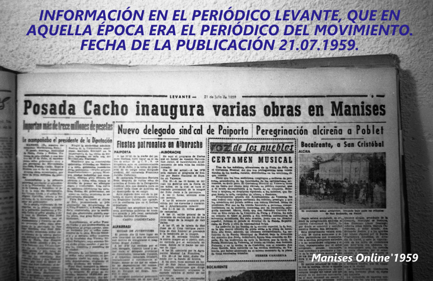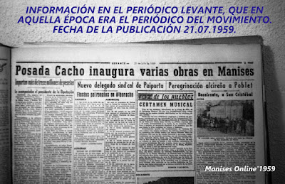 El domingo día 19 de Julio, fiesta de las Santas, el Gobernador Civil de Valencia Jesús Posada Cacho vino a Manises, a inaugurar unas obras que estaban hechas y que -aprovechando la celebración del 18 de Julio- Manises ponía en marcha.
