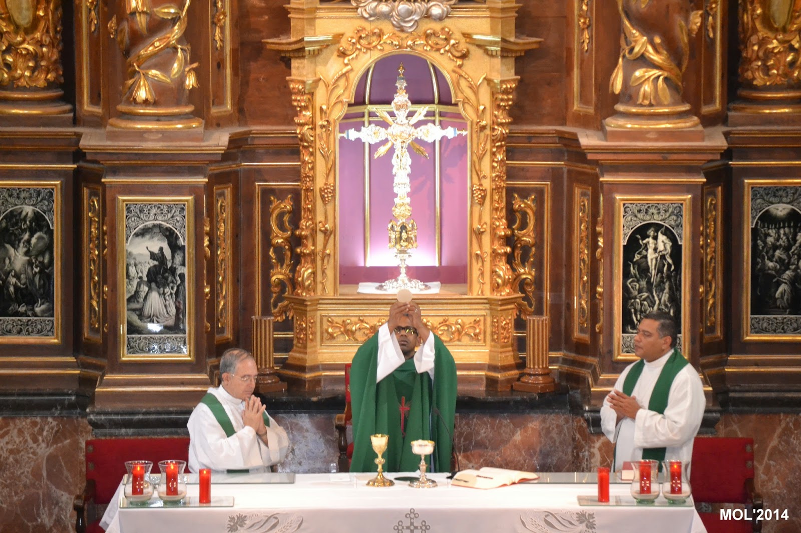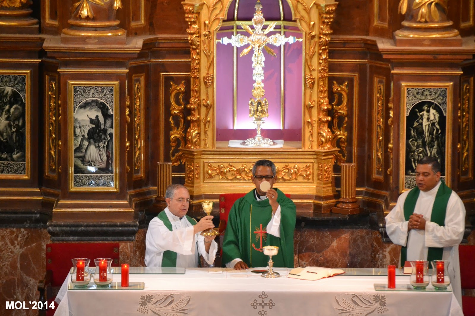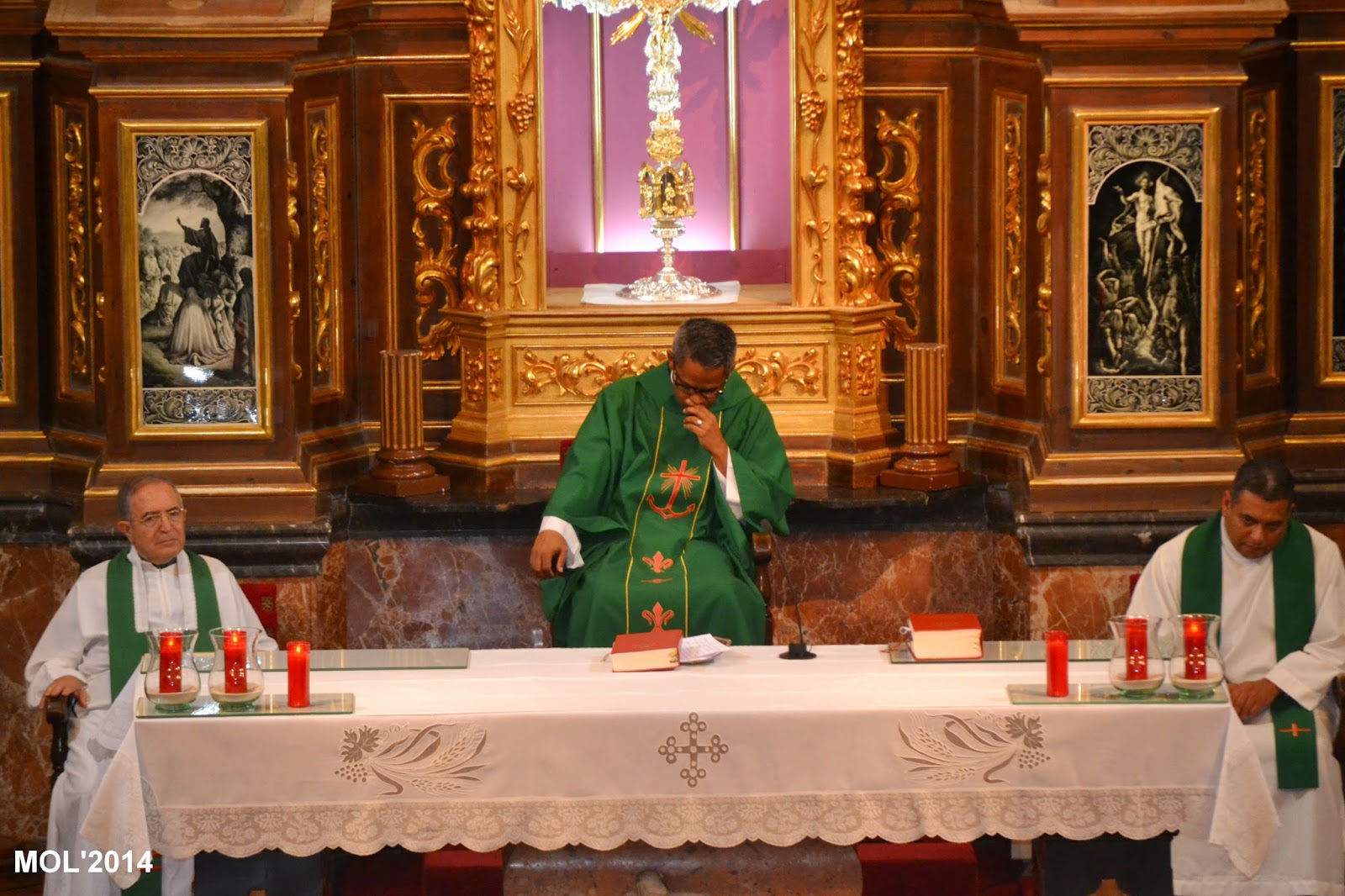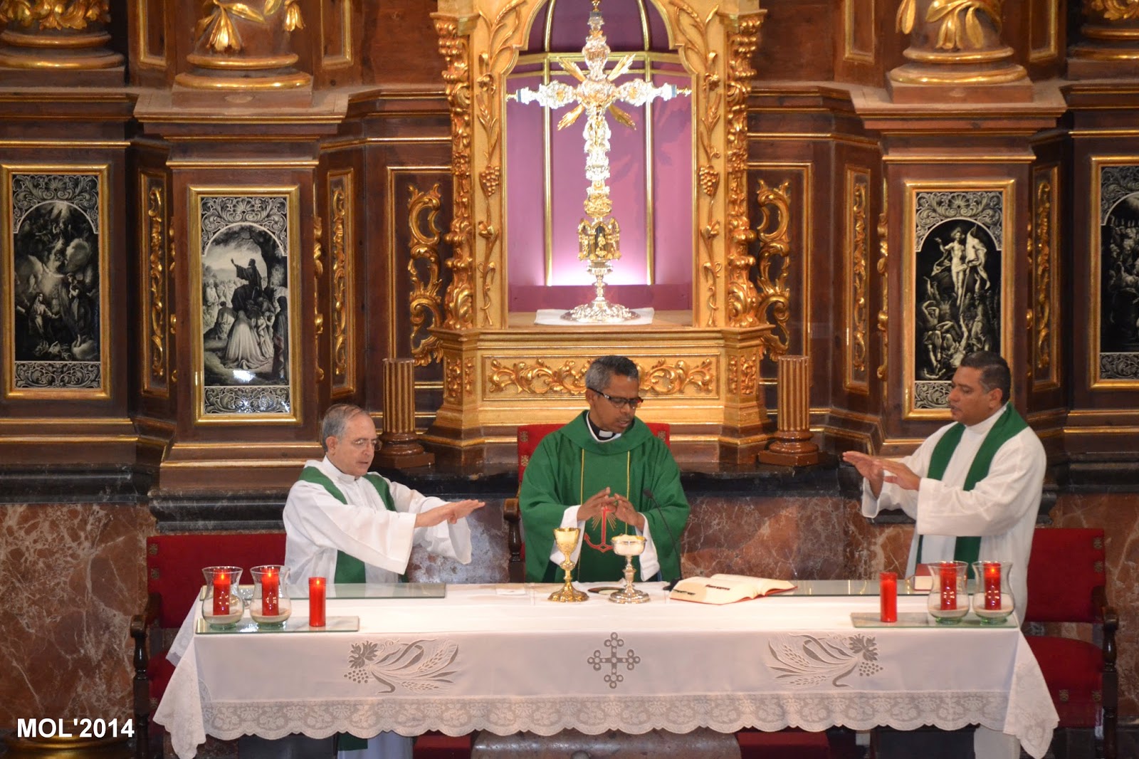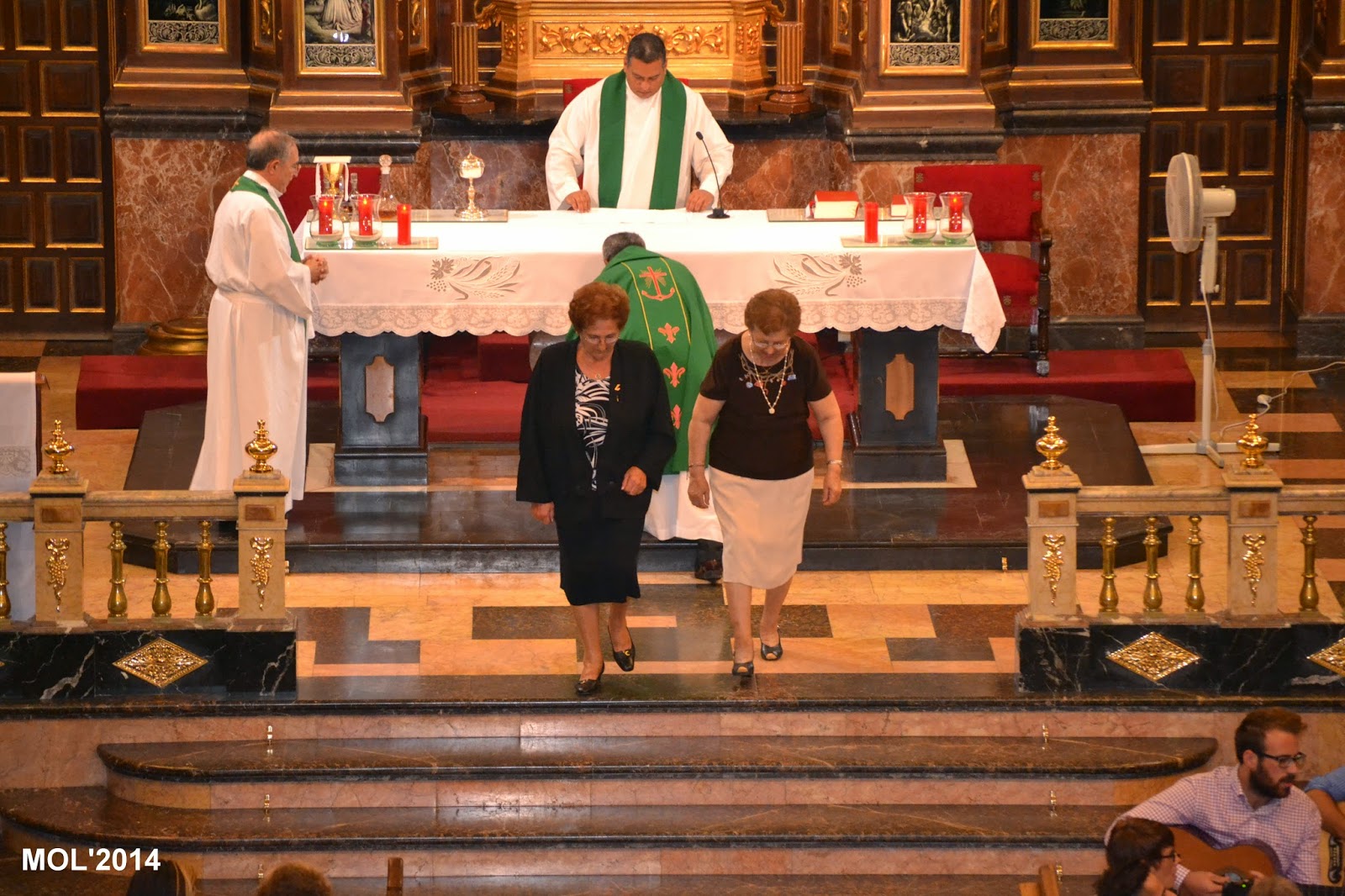 Acompañado por Don Valentín Peñarrocha Carbonell, anterior Párroco hasta el mes de Septiembre de 2013 y ahora Párroco en Marines, y por el nuevo sacerdote, de nacionalidad venezolana, que viene a hacer las mismas funciones de apoyo que Don Juan, dio comienzo la Santa Misa, con la Iglesia llena de feligreses que querían despedirse del que durante estos meses ha estado entre nosotros. La celebración ha estado acompañada por el grupo de jóvenes de la parroquia con guitarras y cantos de despedida, a los que se les había unido el actual Párroco Don Pablo Tos Real.