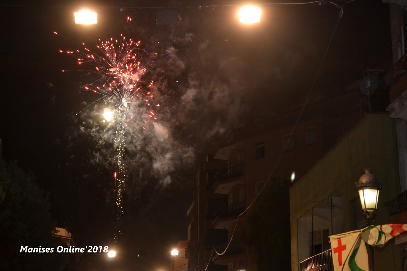 Llegados al final del recorrido, en la avda. de Blasco Ibáñez, se ha disparado un pequeño castillo de fuegos artificiales. dando por terminada la fiesta de este año.