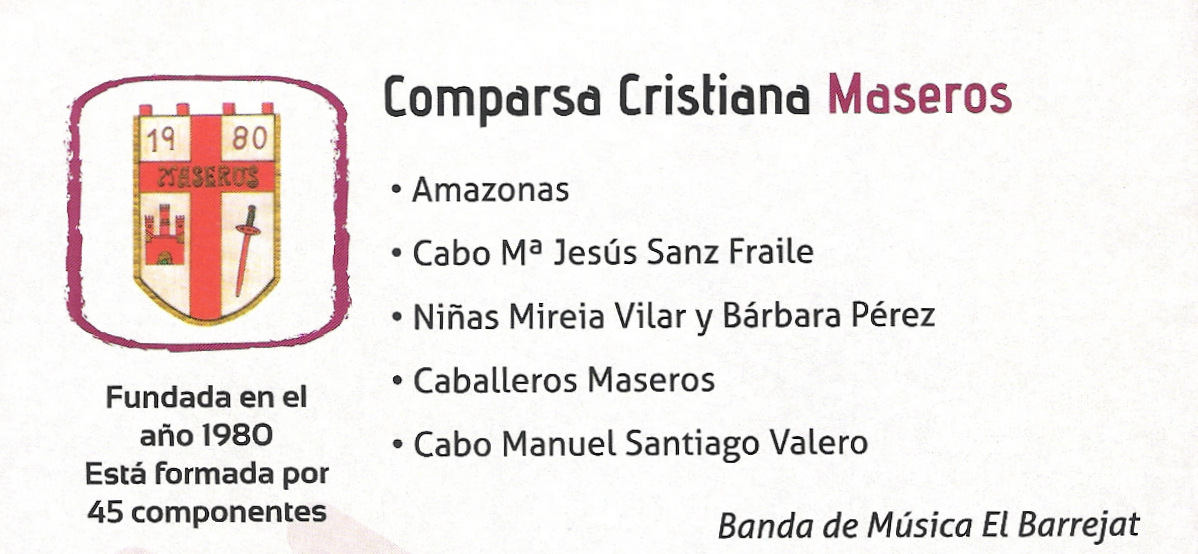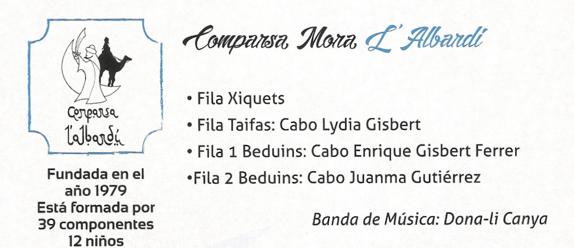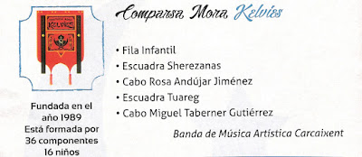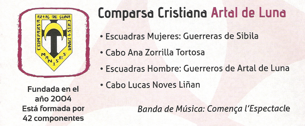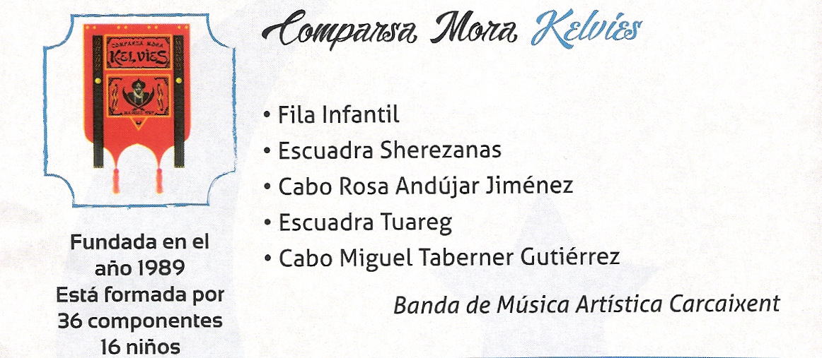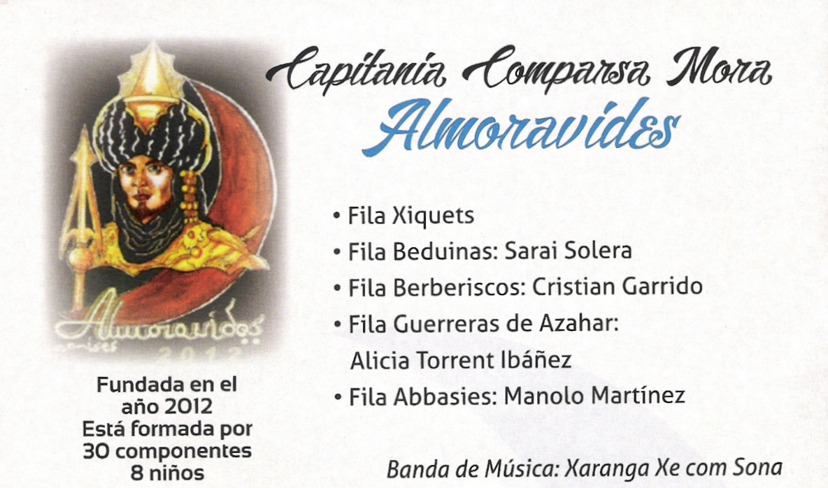 Este pequeño apunte de todas las comparsas que existen en Manises son las que han desfilado en el año 2016, y están relacionadas -según los datos que ellas mismas han ofrecido- por orden de creación.