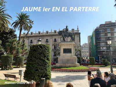 Jaume I en el Parterre. Est es el moment mes emocionant de tot el dia, en el que’l poble li dona les gracies al Rei Jaume I per la seua victoria sobre els moros i que mos lliverara, fent lliure al Regne de Valéncia.
