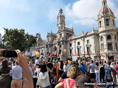 Una vegà finalisat l’acte en la Catedral, es varem dirigir a la plaça de l’Ajuntament, esperant que la Senyera baixara pel balcó i començar la provessó civica fins al Parterre, on es fa l’homenage al Rei Jaume I.