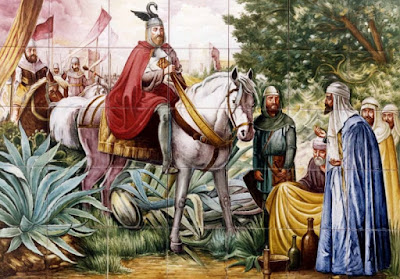 Mural de taulells de Manises, on es pot vore al Rei En Jaume 1er aceptant la derrota dels moros en la conquista del Regne de Valéncia.