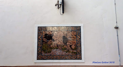 Como se puede observar en la parte superior se ve que la cruz que estaba rota y casi a punto de caer (en el centro de la imagen) ya está restaurada, y a su lado los pináculos de cerámica, nuevos, y de los cuales ya ofrecí un pequeño reportaje fotográfico, con el nombre del restaurador: el ceramista manisero Arturo Mora Benavent.