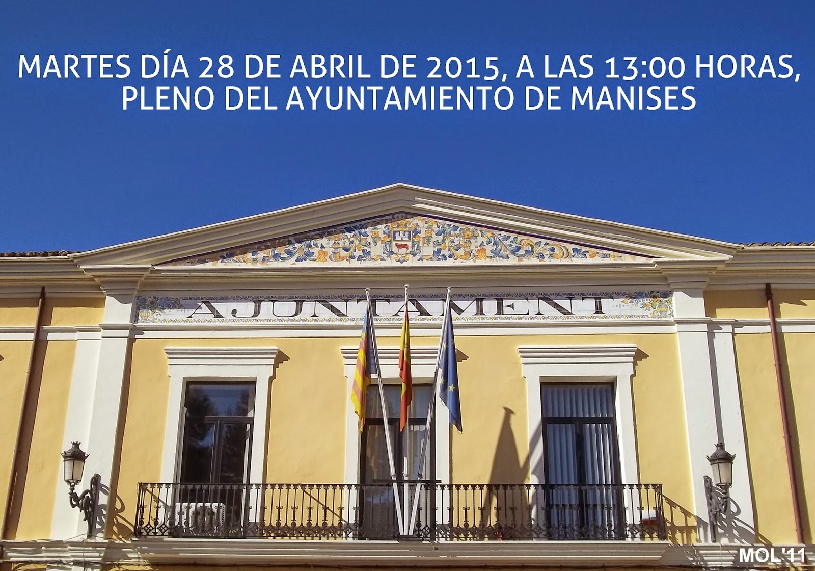 del Pleno del Ayuntamiento de Manises, que se celebra el martes día 28 de Abril a las 13:00 horas.