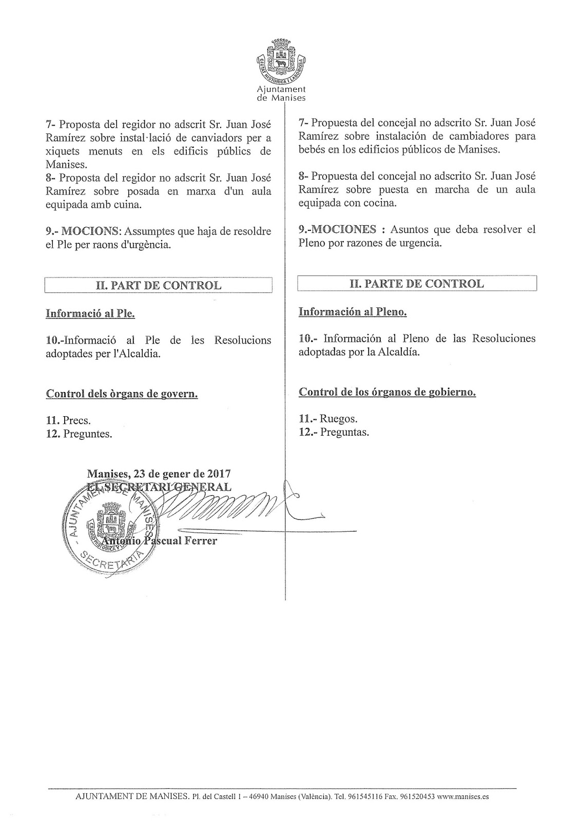PLE ORDINARI DE L’AJUNTAMENT