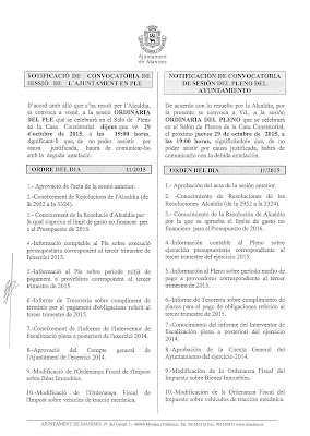 del Pleno del Ayuntamiento de Manises que se celebra el Jueves día 29 de Octubre, en el Salón de Actos de la Casa Consistorial, a las 19:00 horas: