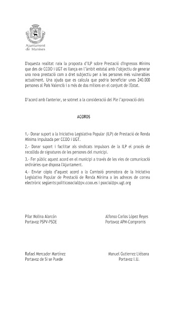 Mociones presentadas por el Equipo de Gobierno (APM-COMPROMÍS, PSPV-PSOE, SÍ SE PUEDE MANISES e IU):