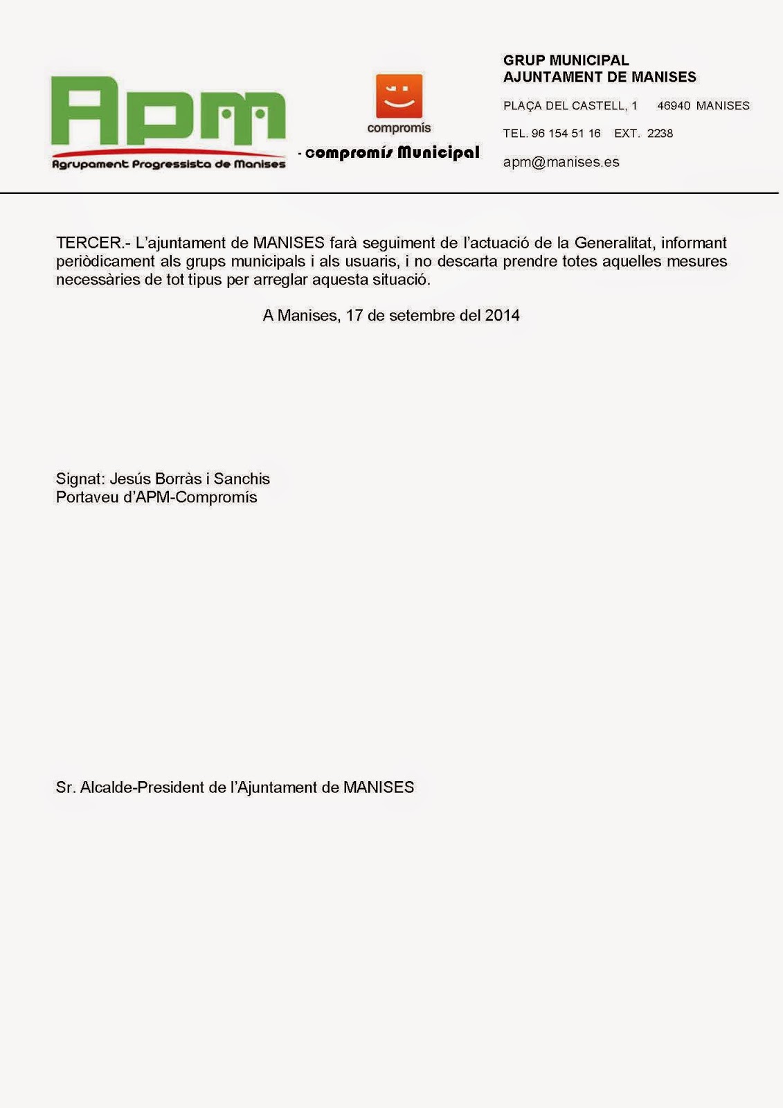 PLE DE L’AJUNTAMENT DE MANISES,
