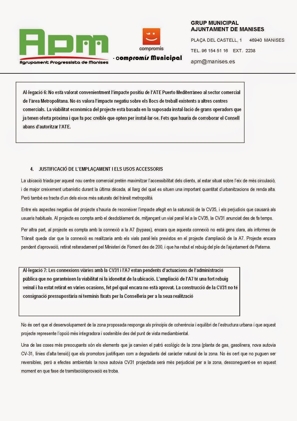 Mociones de APM Compromís sobre diversos asuntos: