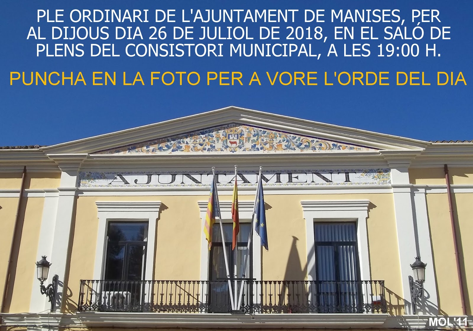 DE JULIOL DE 2018, A LES 19:00 HORES,